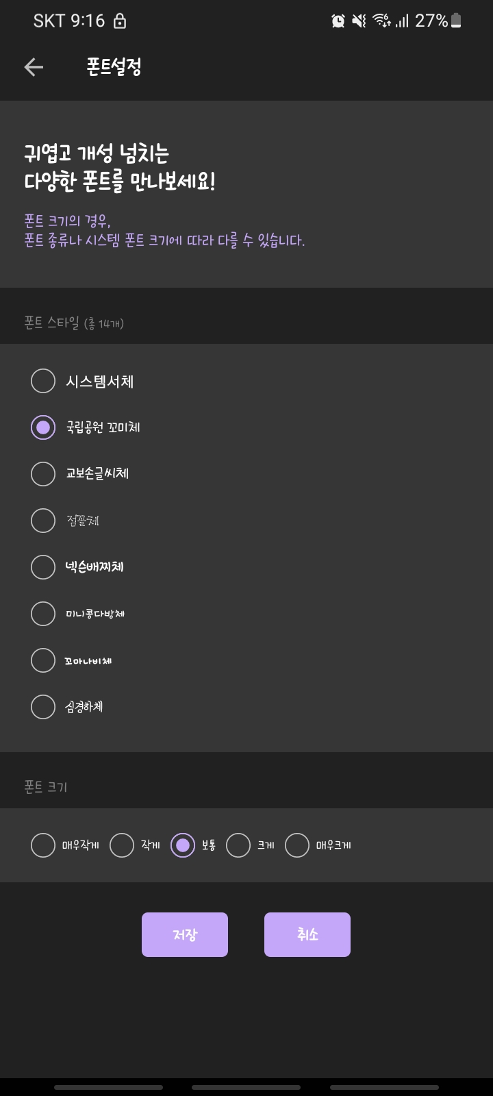 앱이 제공하는 폰트를 모두 테스트 해본 결과