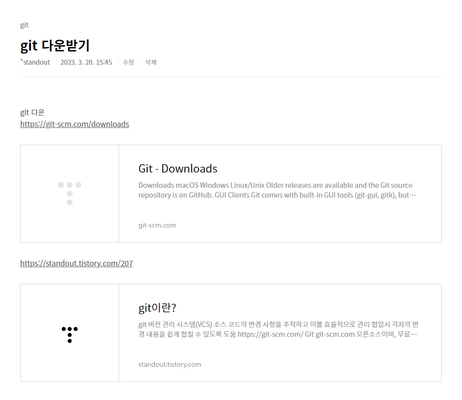 위 게시물에 들어가면 'git이란?' 링크를 발견할 수 있다.