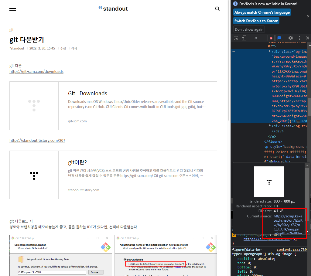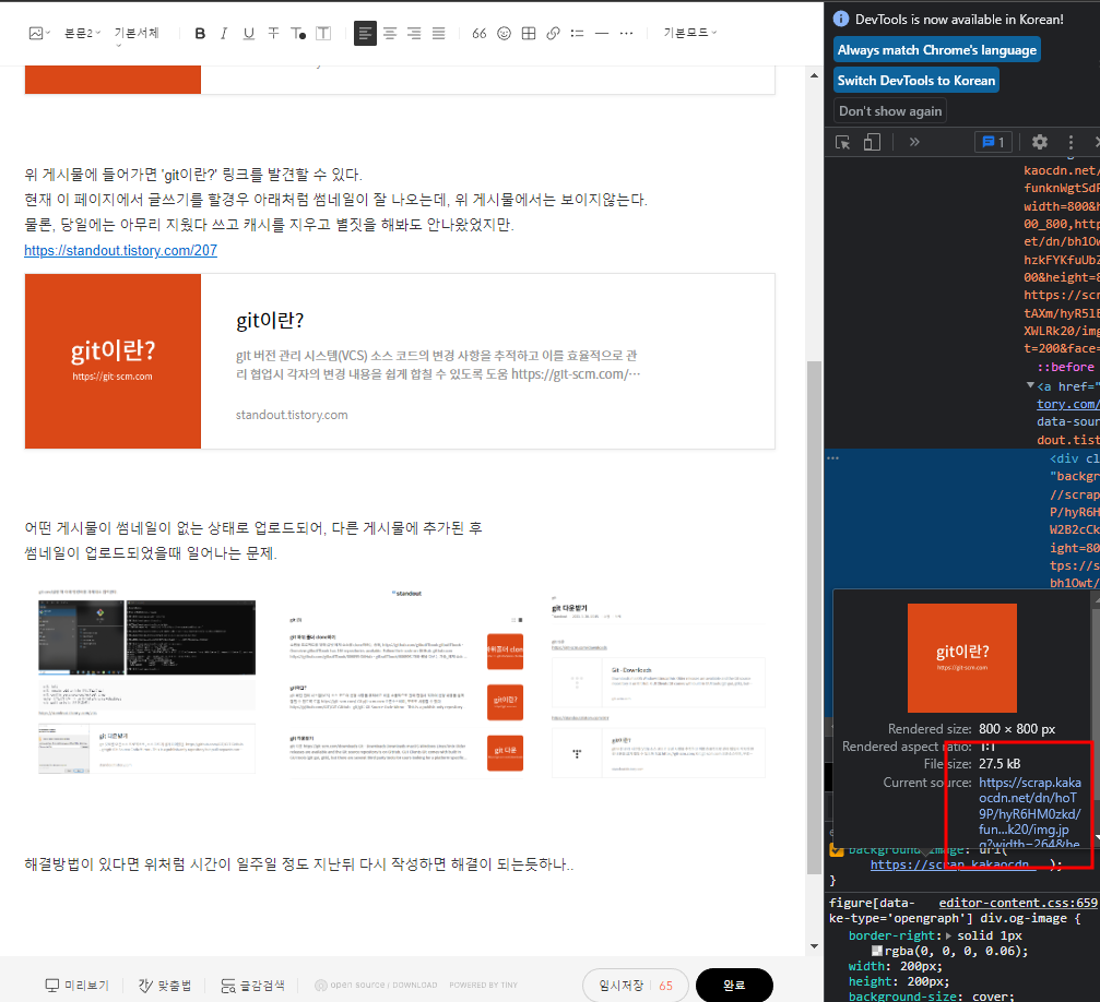 소스를 확인해봤더니 같은 url첨부임에도 썸네일이 달랐다.