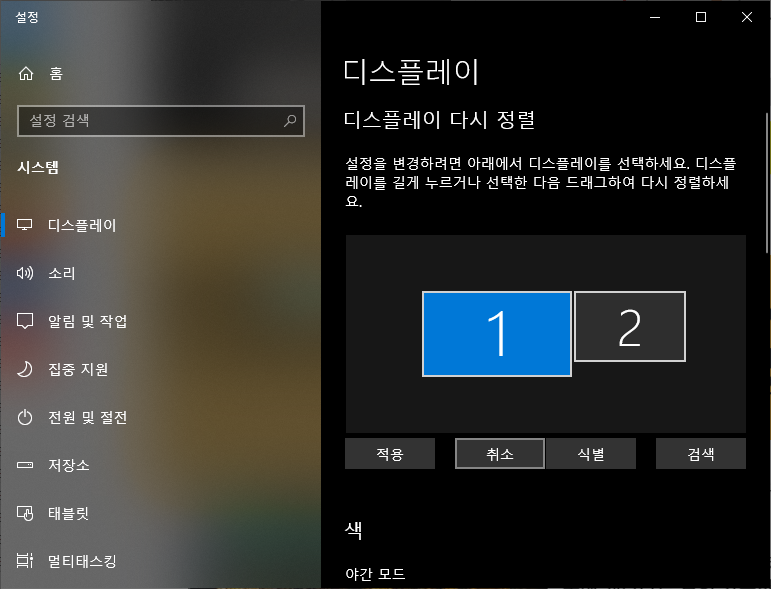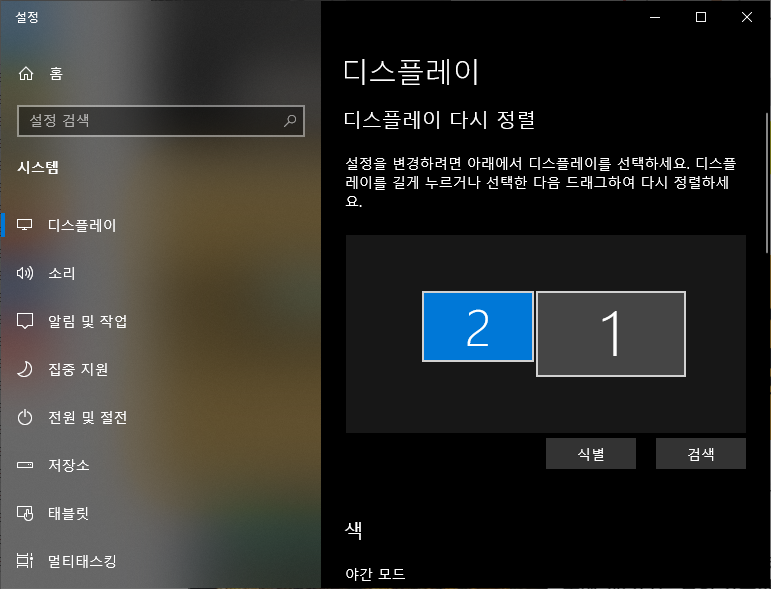 바탕화면 - 마우스 오른쪽 - 디스플레이 - 모니터순서변경