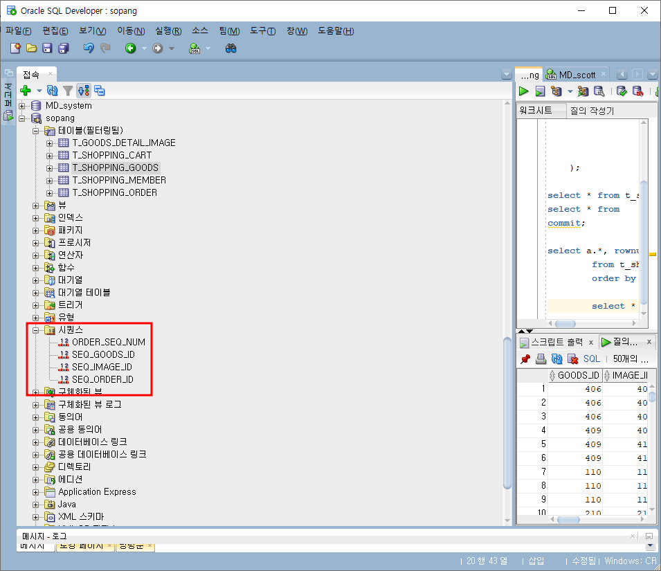 "ORDER_SEQ_NUM" 시퀀스는 400부터 시작하여 1씩 증가하면서