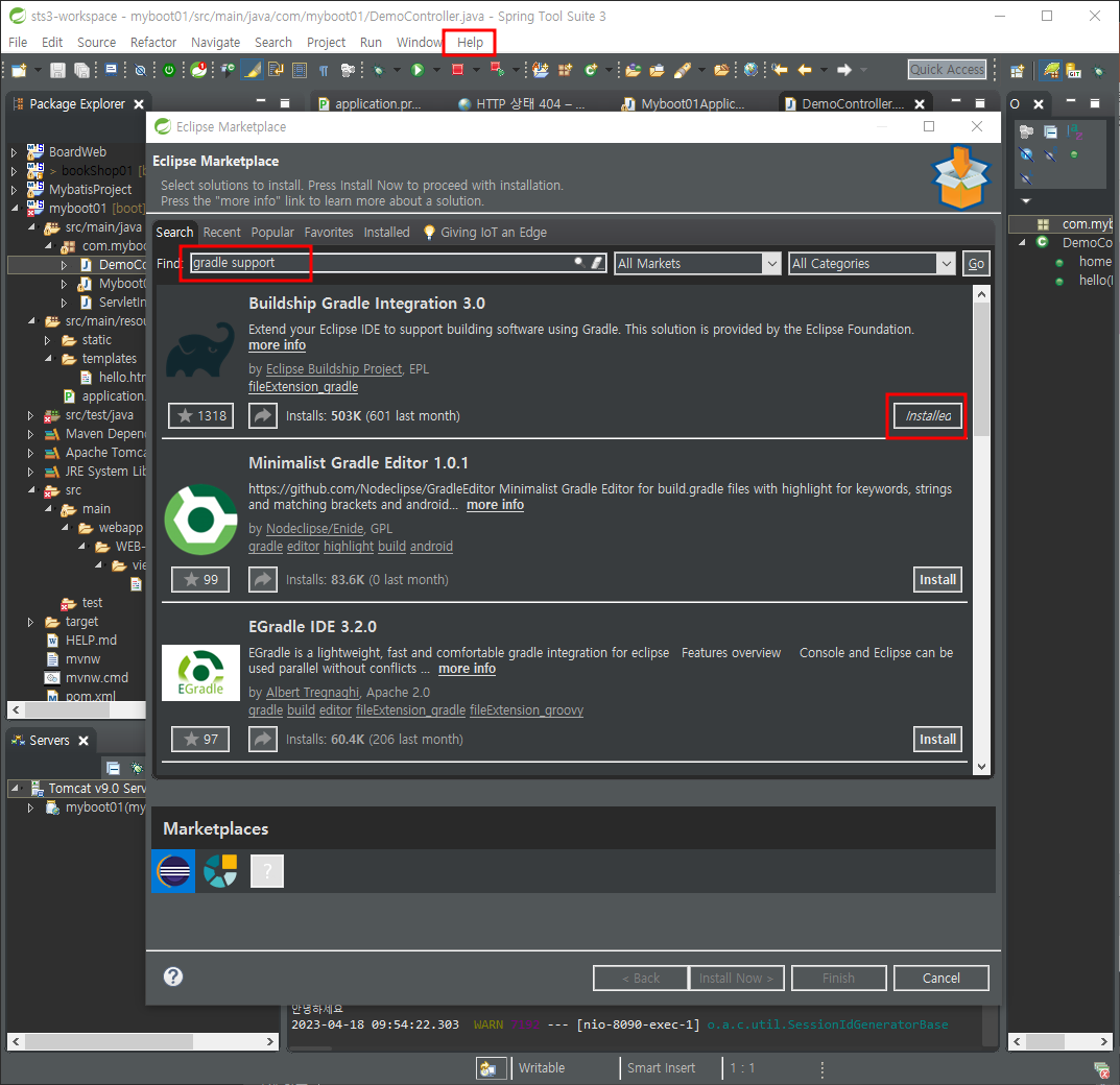 이클립스 gradle 플러그인 설치