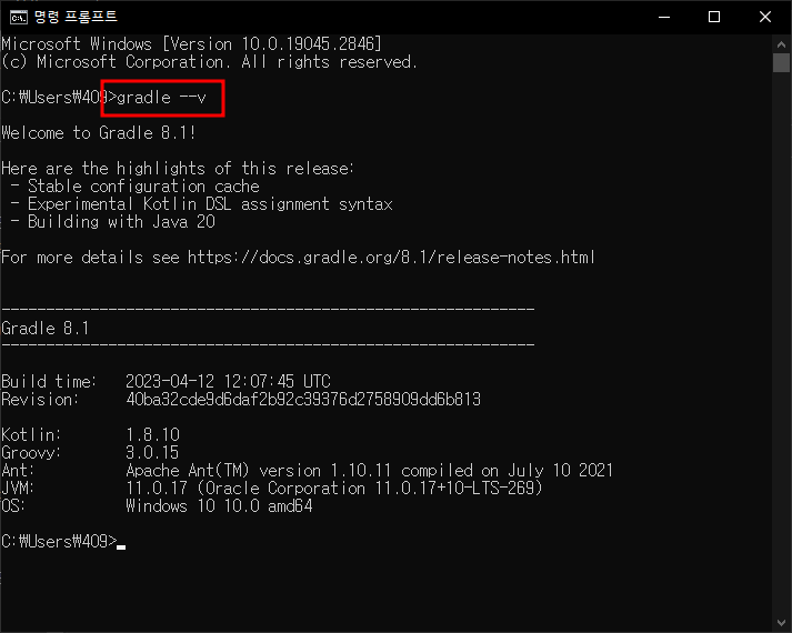 cmd - gradle설치확인 - 완료.