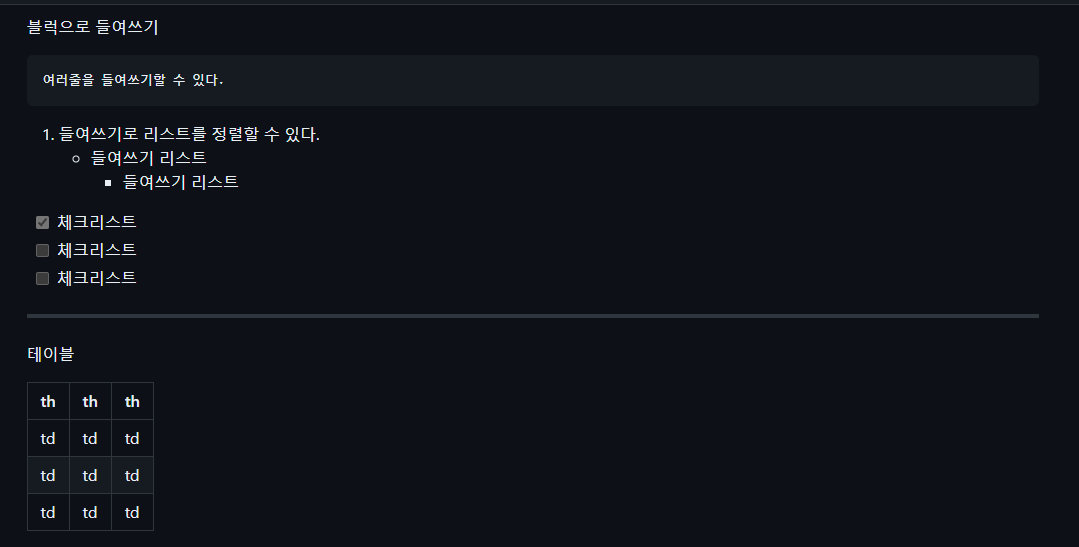 들여쓰기, 리스트, 체크박스와 table