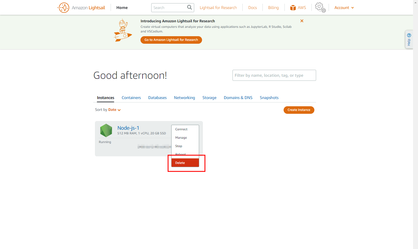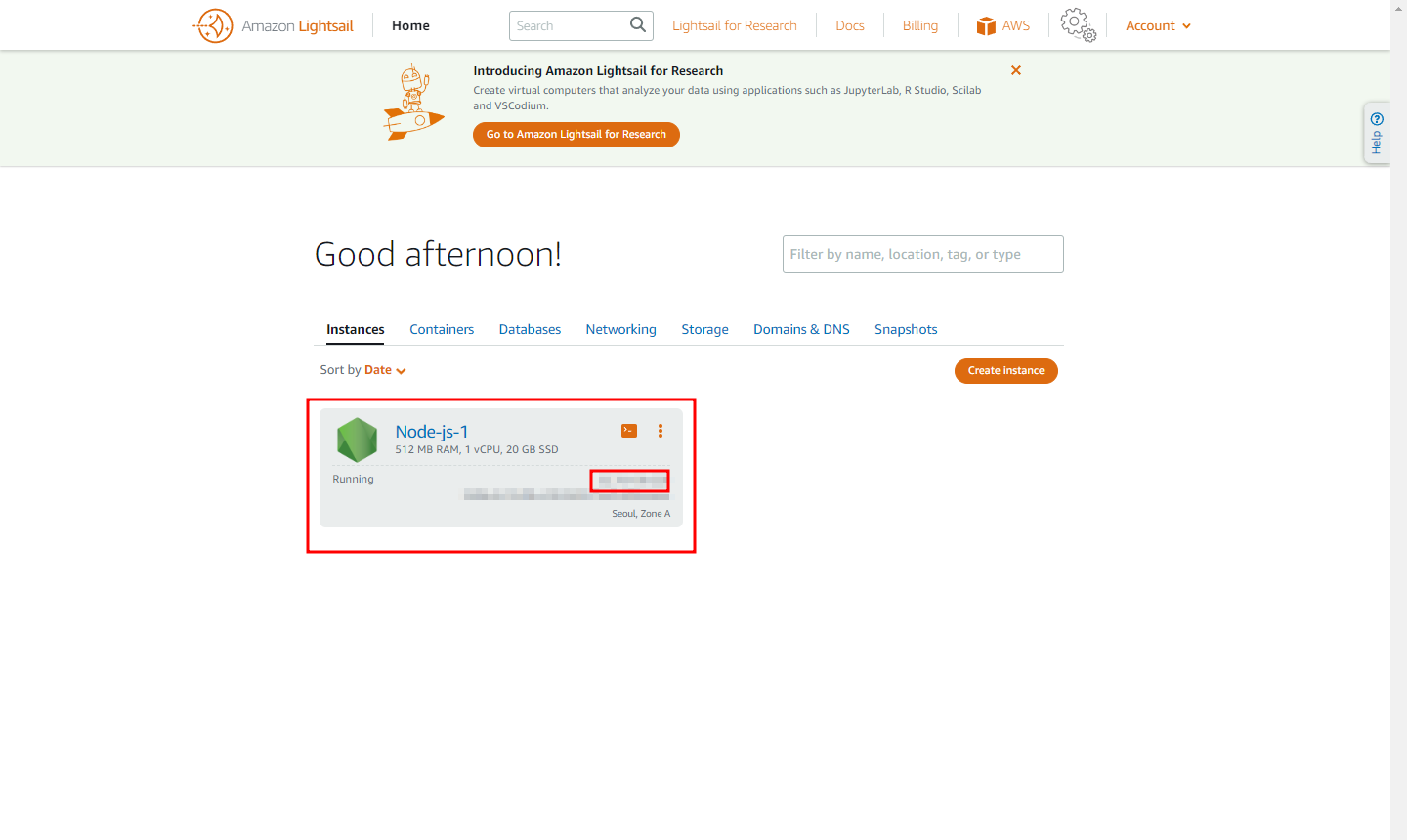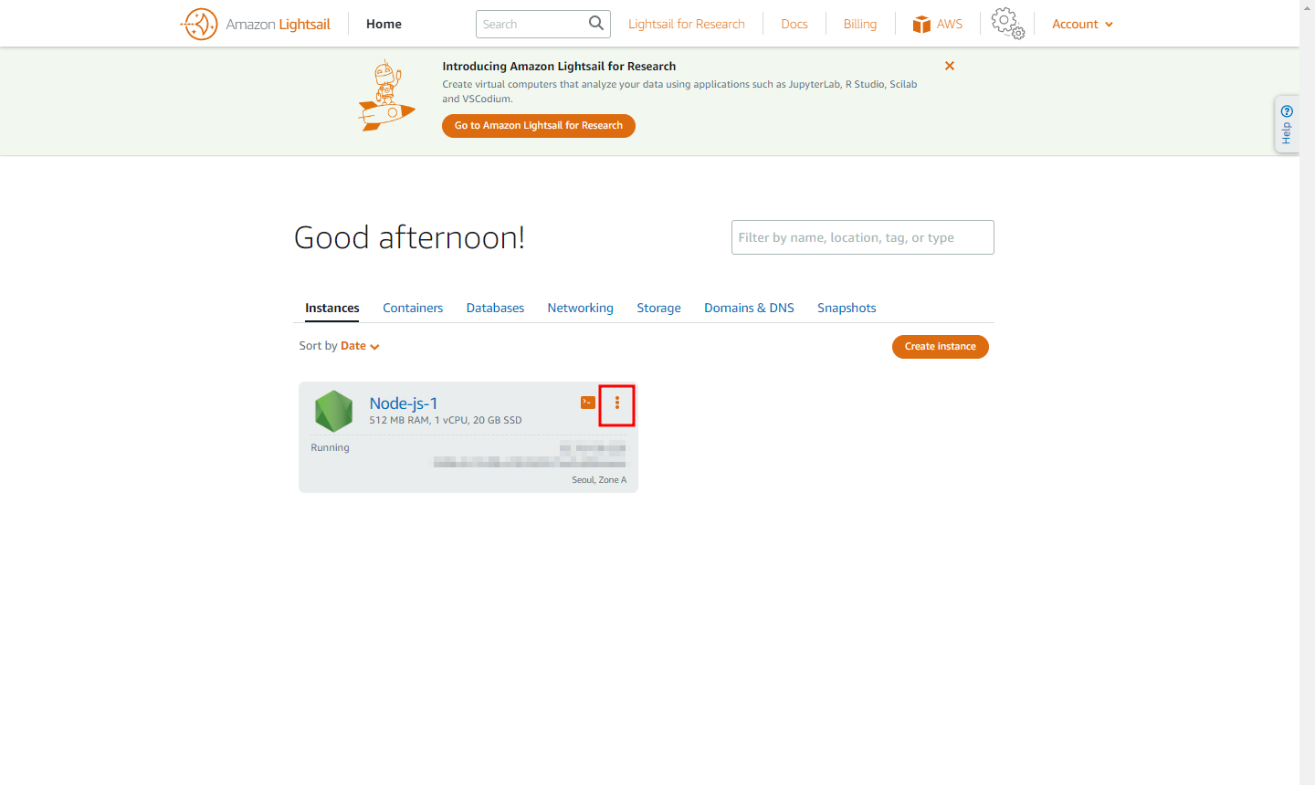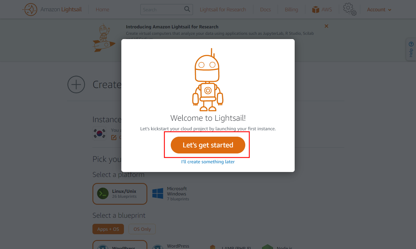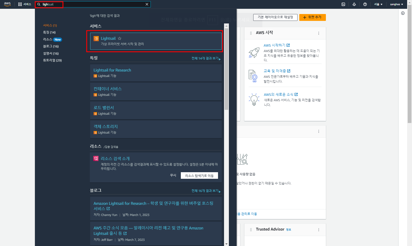 AWS 접속 후 Lightsnail 검색