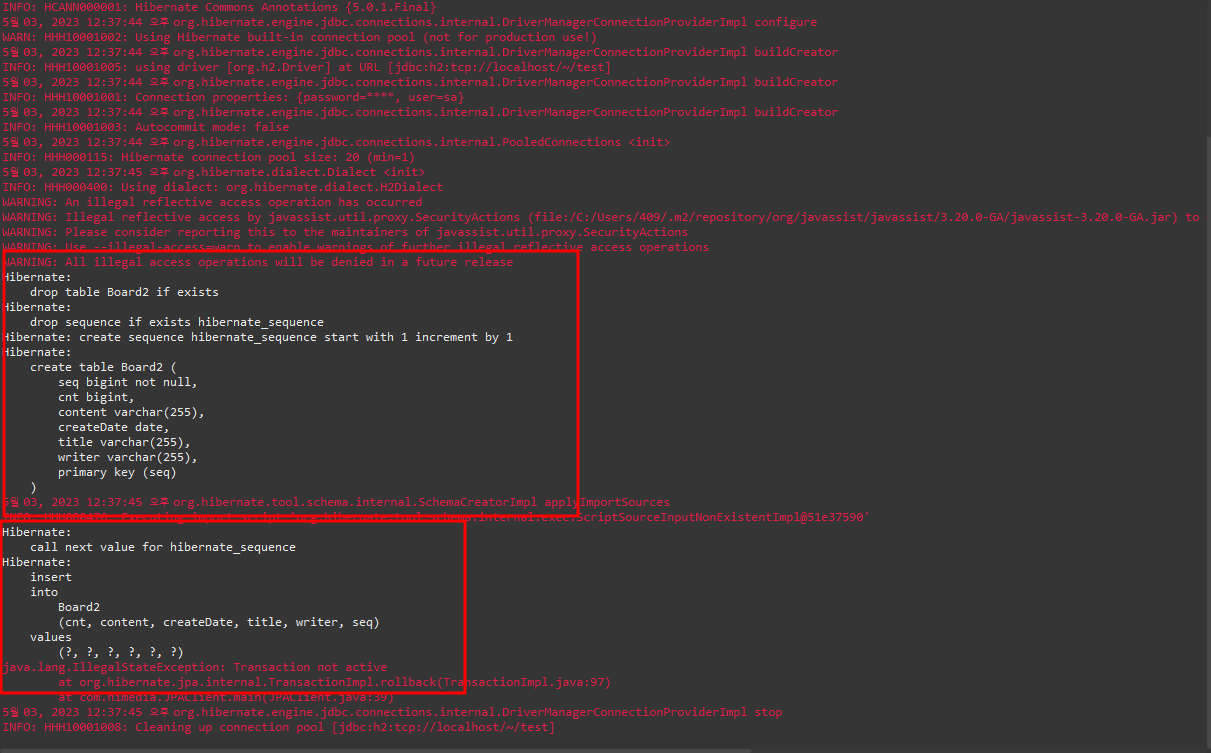 | JPA 테이블 CRUD중 에러, java.lang.NoClassDefFoundError: javax/xml/bind/JAXBException (0) | 2023.05.03 |