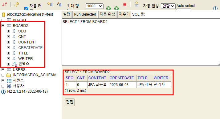 테이블 생성 및 글 등록