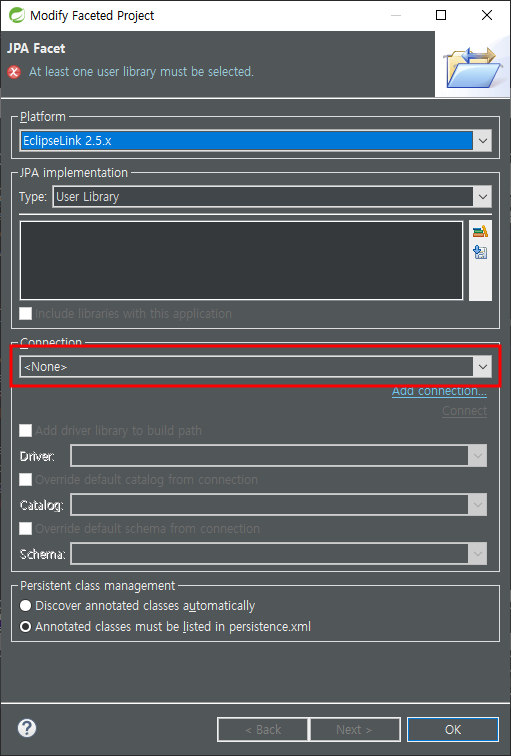 JPA 에러 At least one user library must be selected.