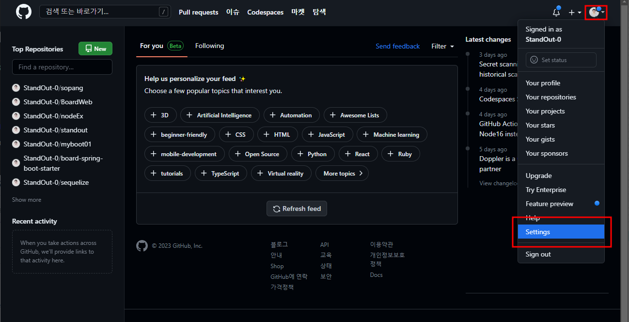 깃 - 설정- 관리자설정