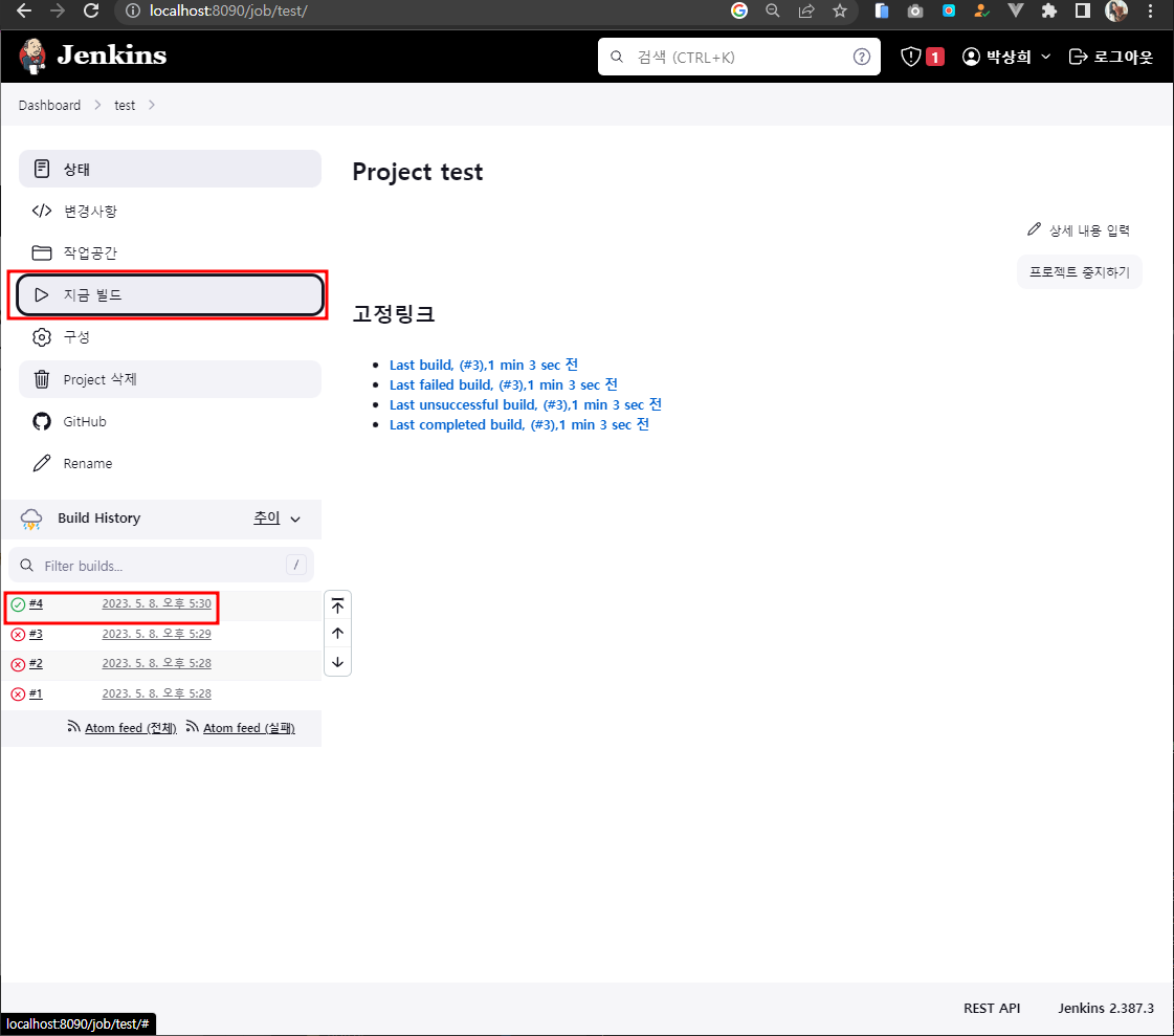 Jenkins관리 - 플러그인관리 - github api사용가능여부 확인