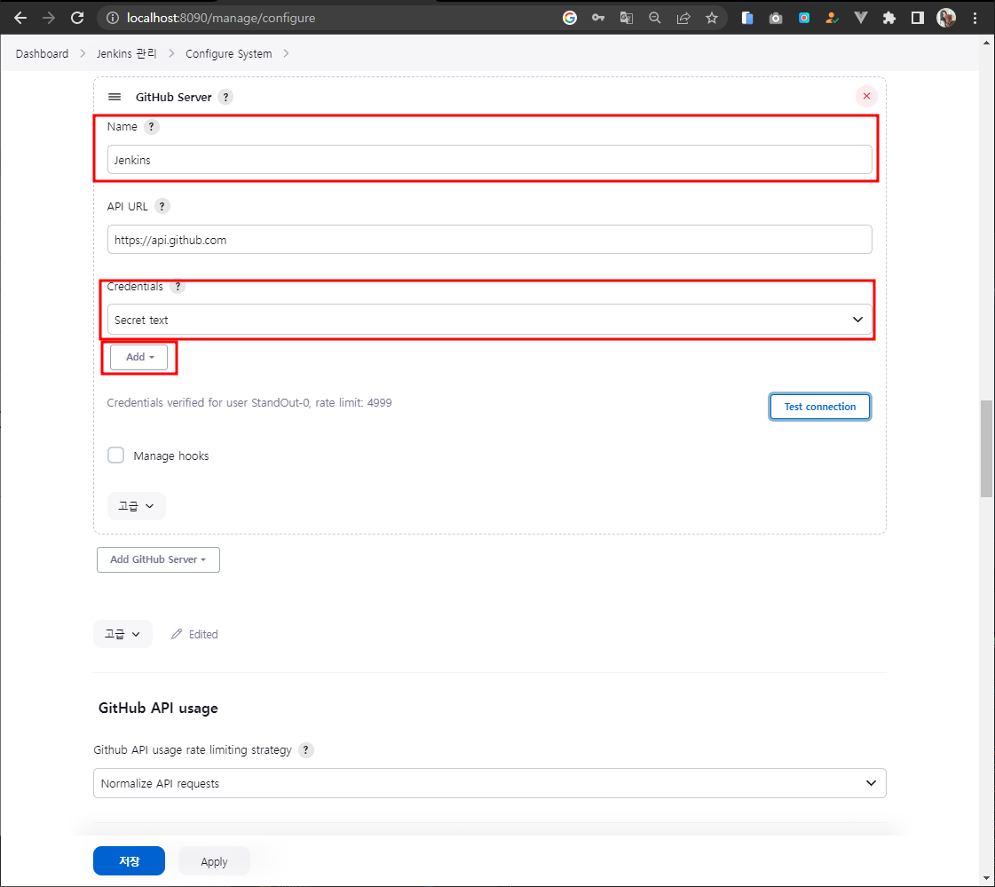 젠킨스관리 - Global Tool Configuration - GitHub - Add GitHub Servers