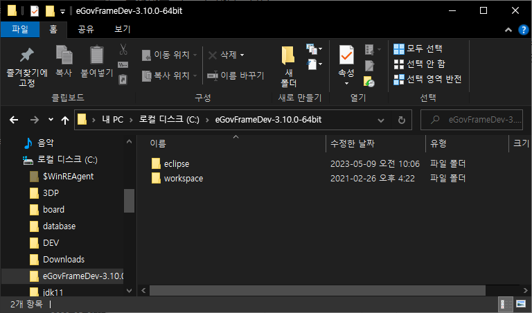 C:\eGovFrameDev-3.10.0-64bit\eclipse