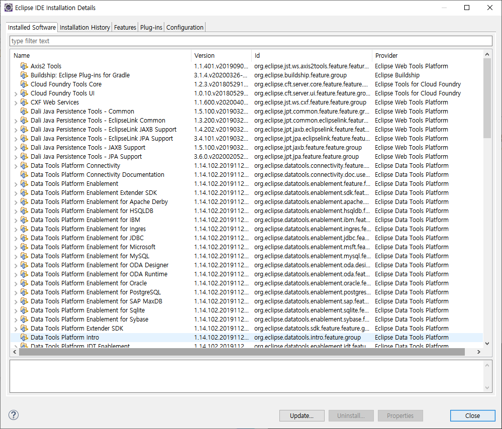 Help - About Eclipse IDE - installation Details