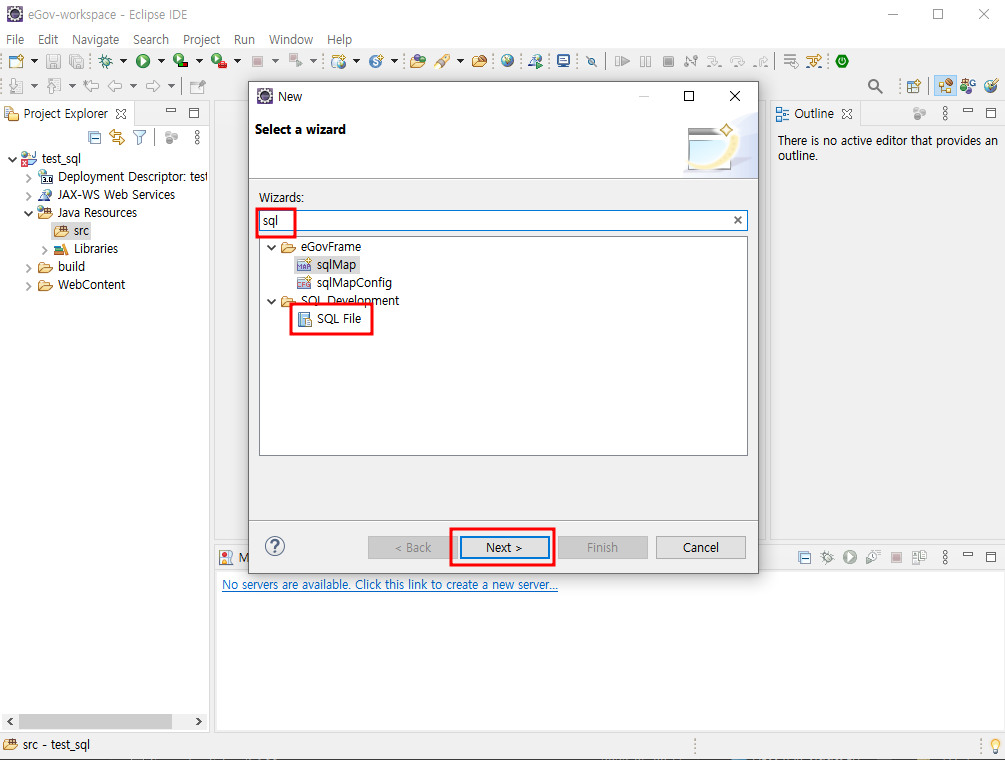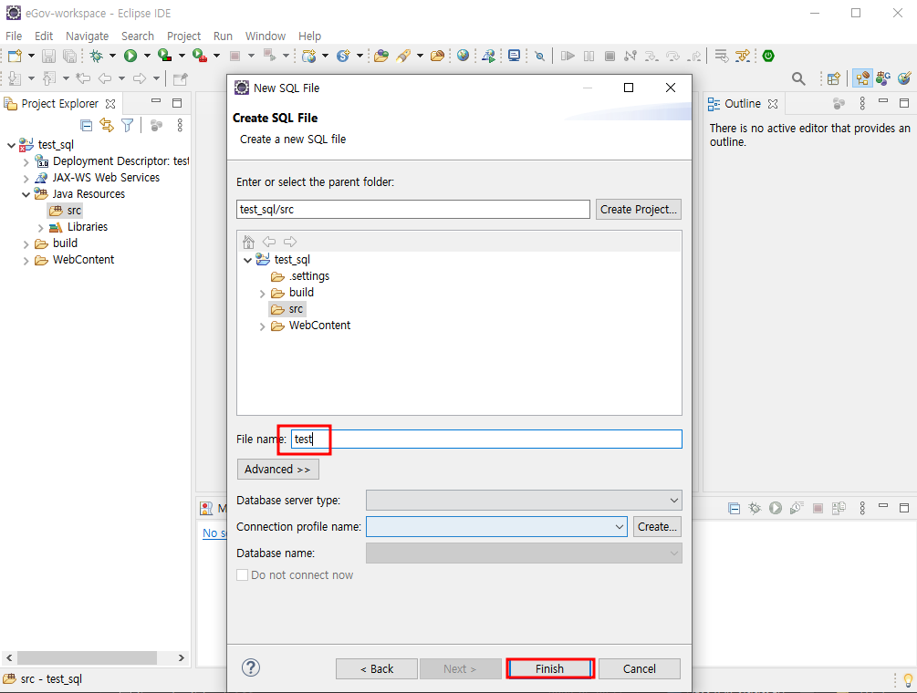 프로젝트에서 sql 파일을 하나 만들어 connected 하면
