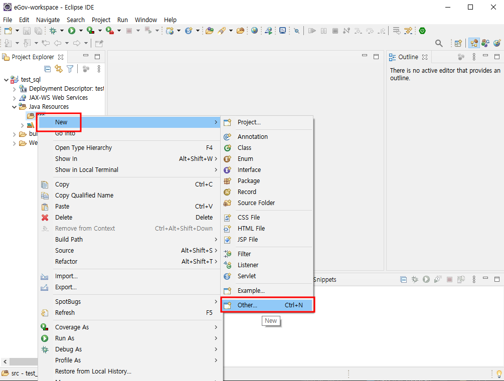 전자정부프레임워크 Eclipse Data Source Explorer 데이터베이스 연결하기