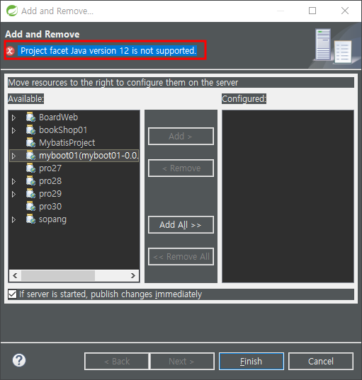 버전을 바꿔가며 톰캣이 뜨는것을 확인 후 변경