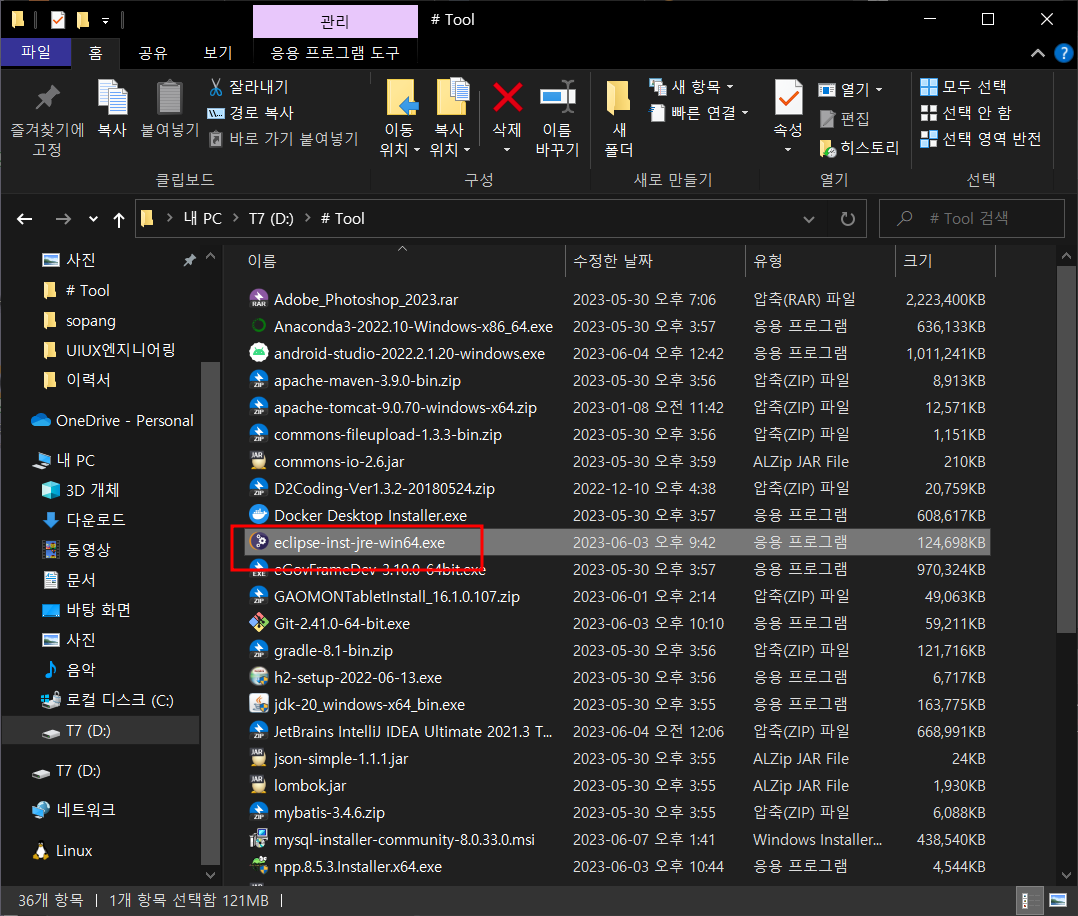 앞서 다운받아 놨던 exe파일을 다시 실행한다.