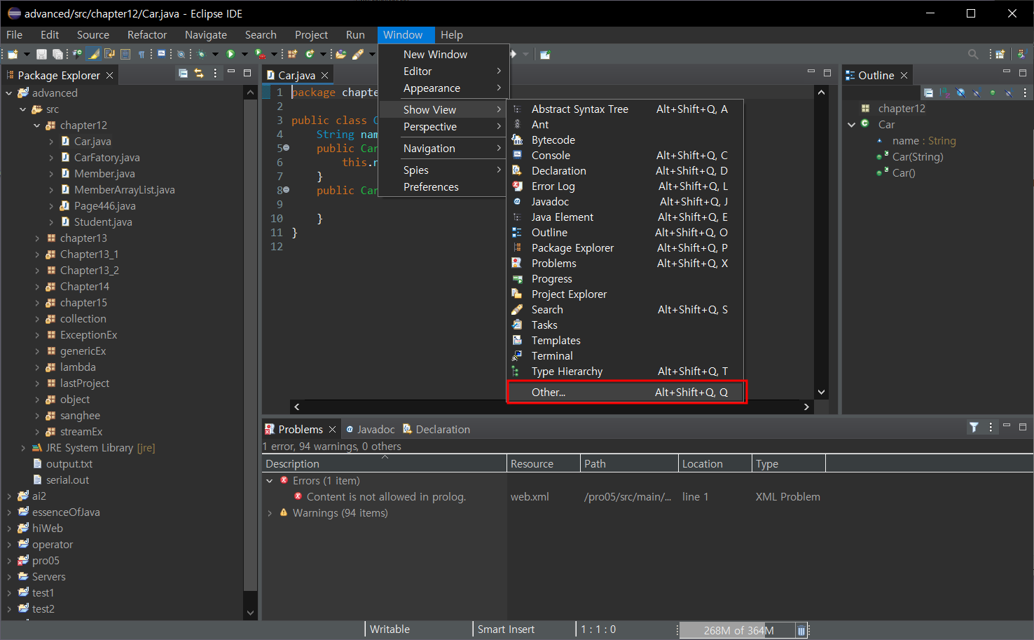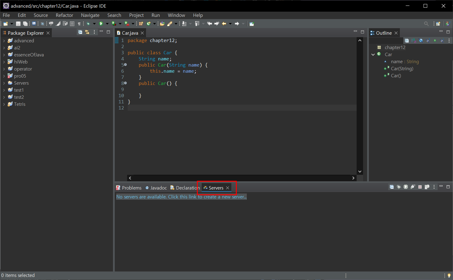 만약 위 servers가 보이지않는다면 Eclipse 설치시 제대로 확인하지않아 다른 버전이 설치된 것.