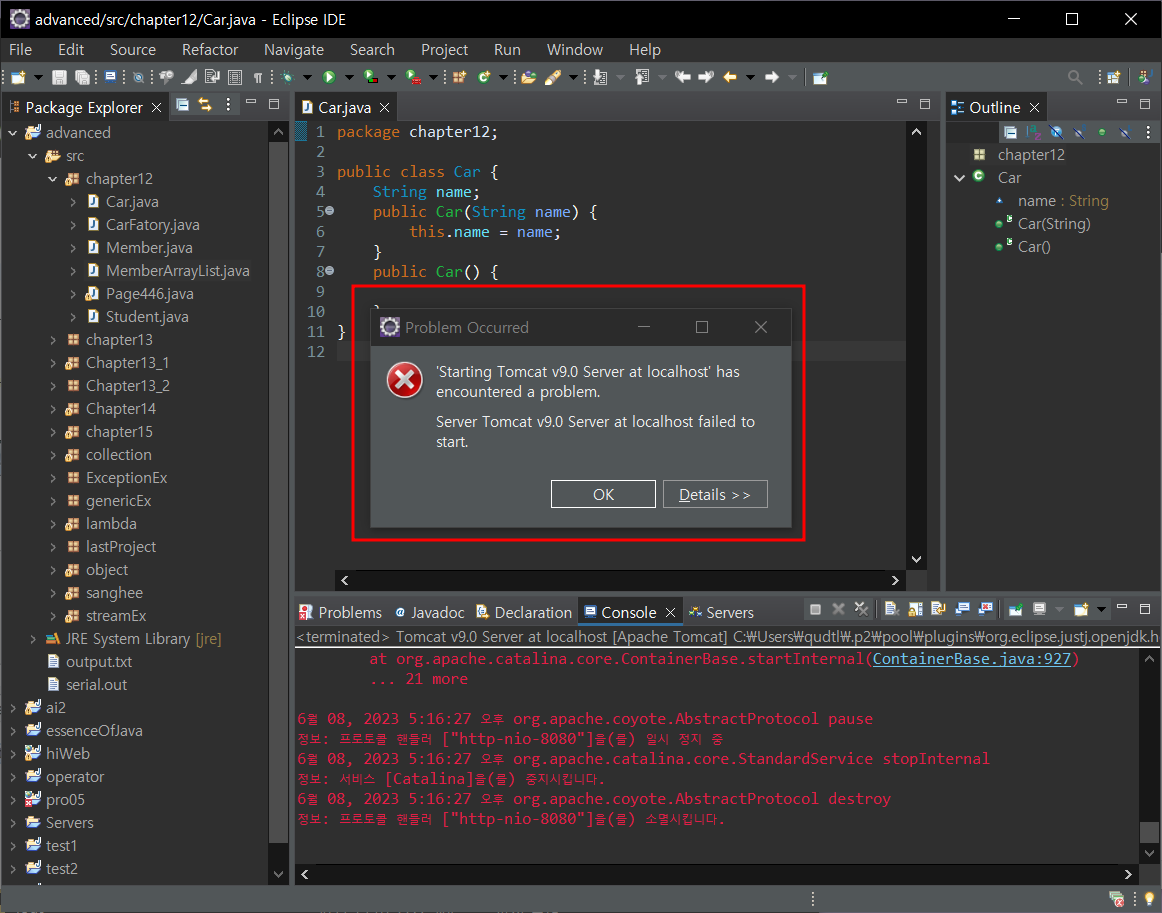 java.util.concurrent.ExecutionException: org.apache.catalina.LifecycleException: 구성요소 [org.apache.catalina.webresources.StandardRoot@7e985ce9]을(를) 시작하지 못했습니다.