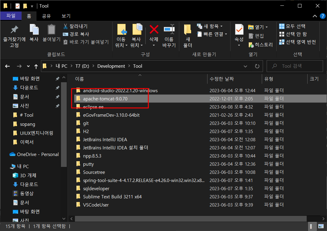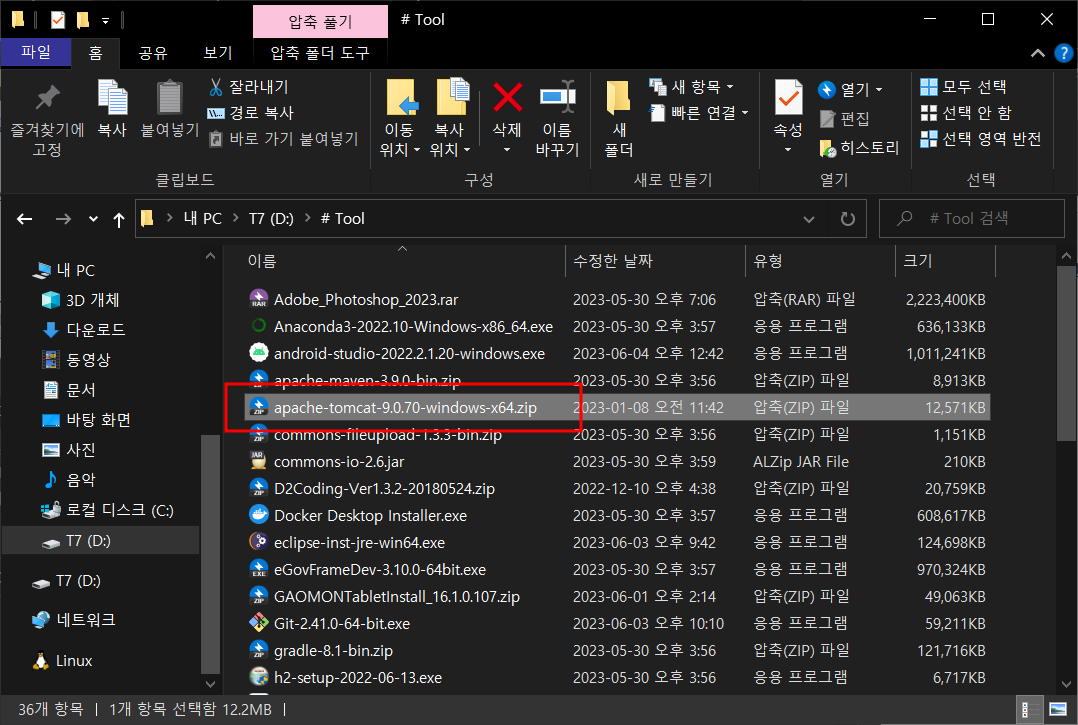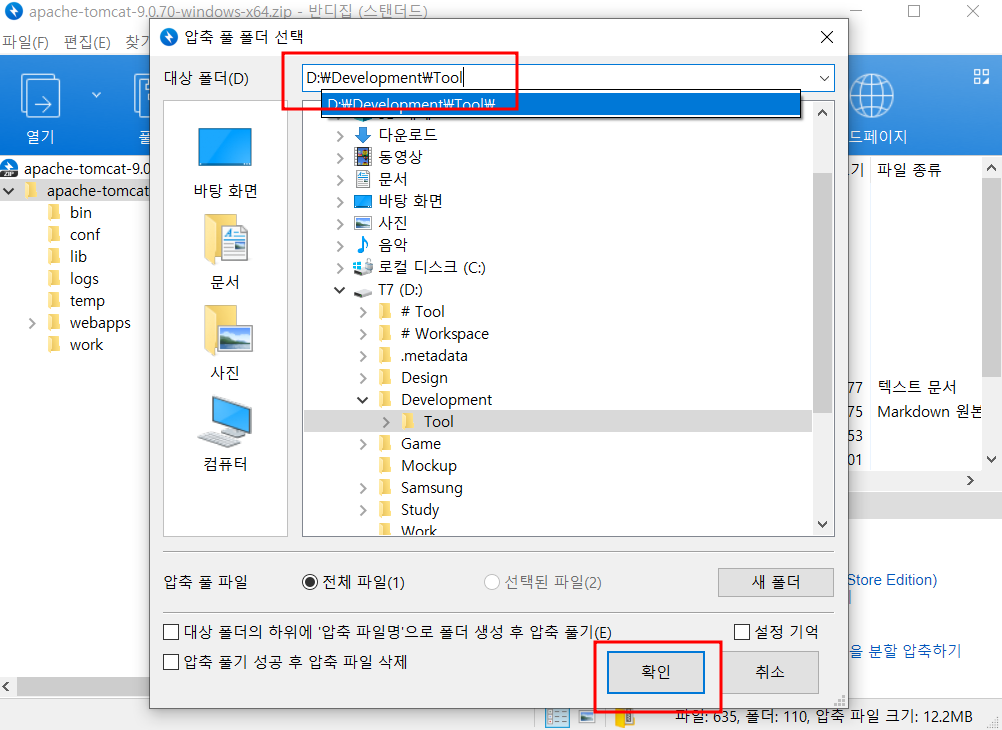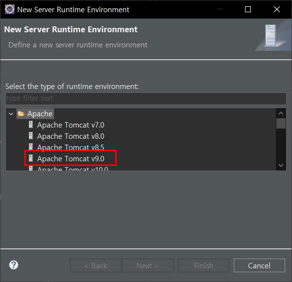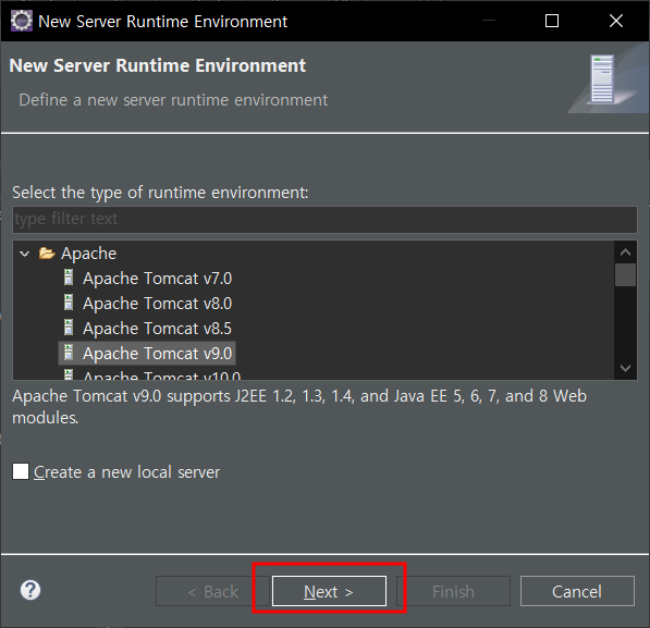 다운받은 톰캣 버전 선택 - next -
