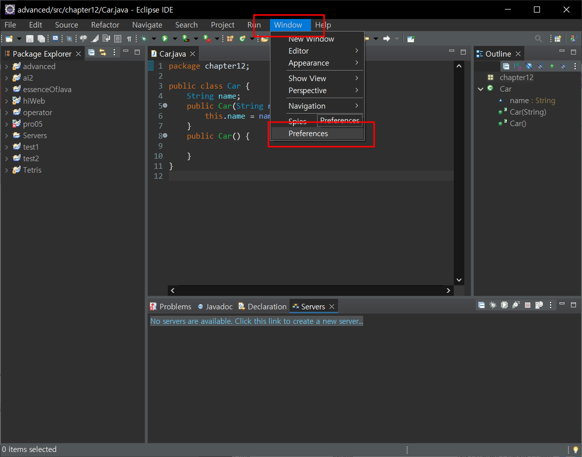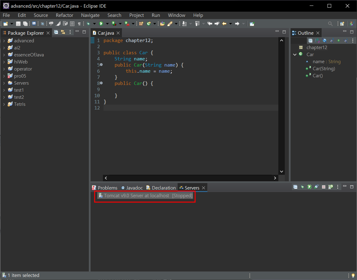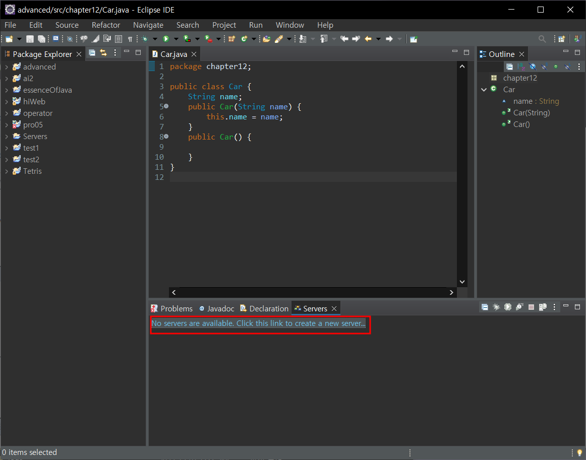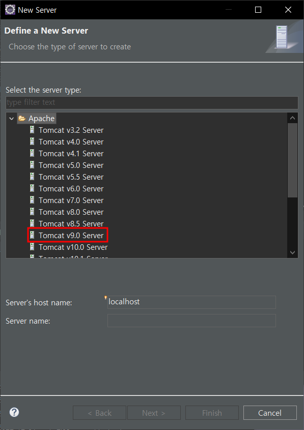 server - no servers are available 클릭 - 다운받은 톰캣버전 선택 - finish
