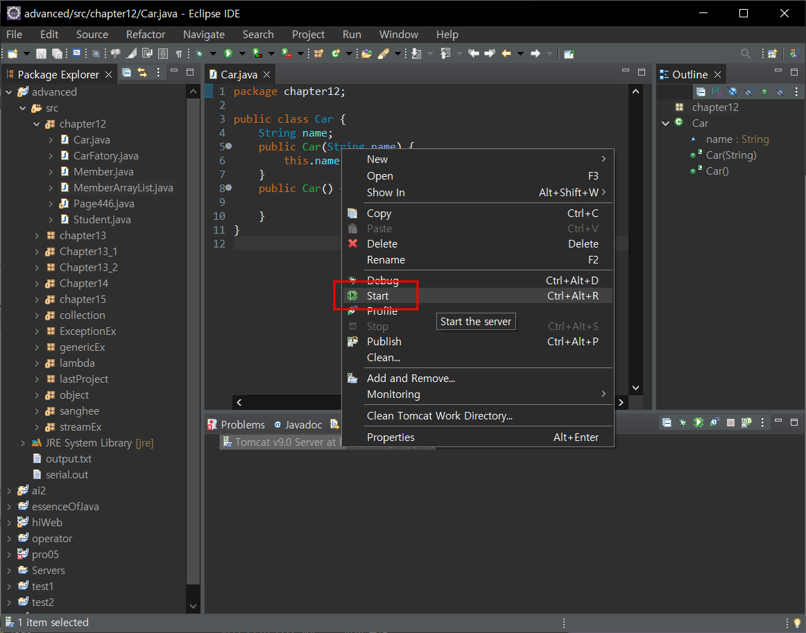 추가된 톰캣 확인 - start