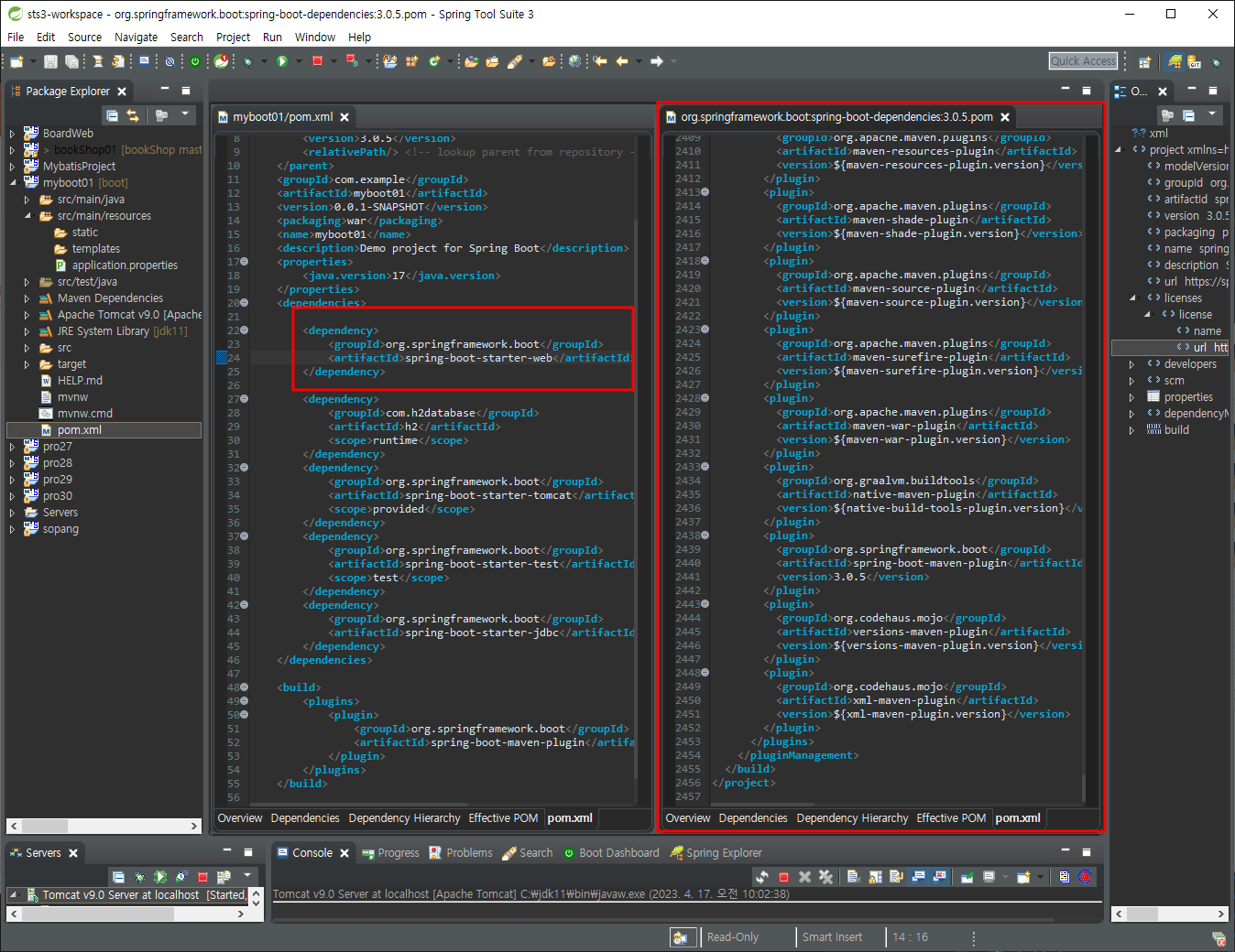 아래보면 pom.xml에 라이브러리들이 명시되어있다.