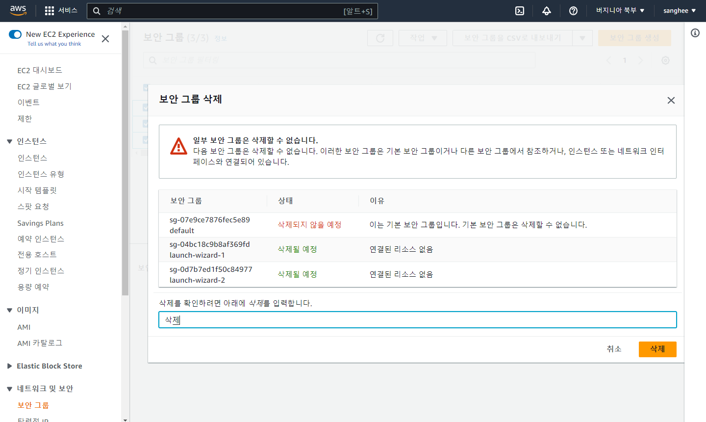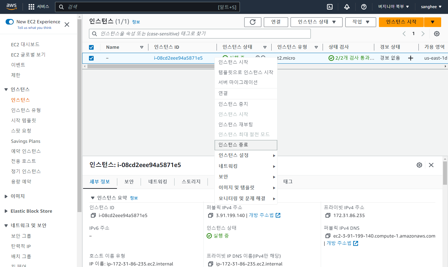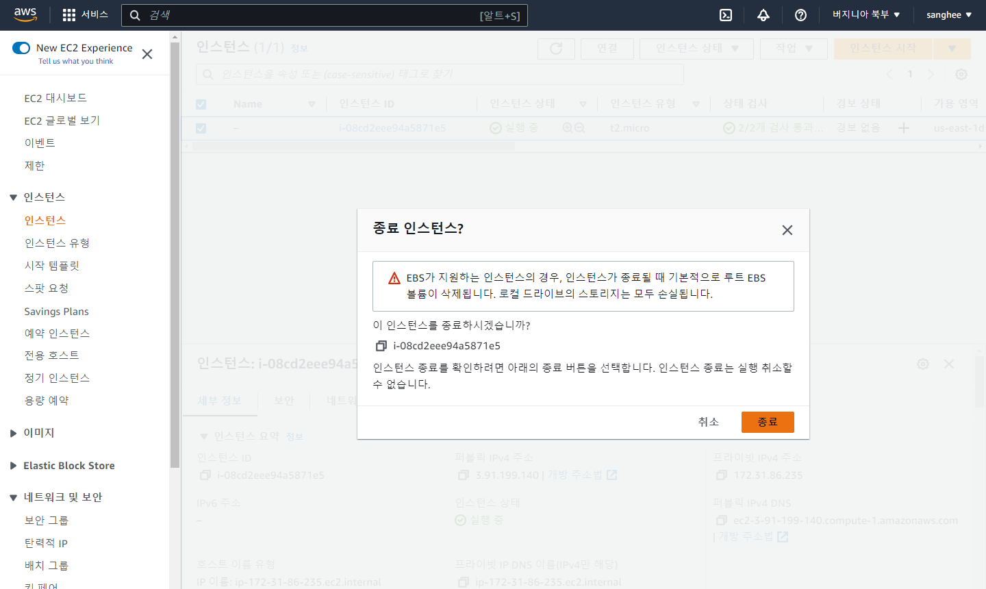 aws - EC2 - 인스턴스 - 인스턴스 종료