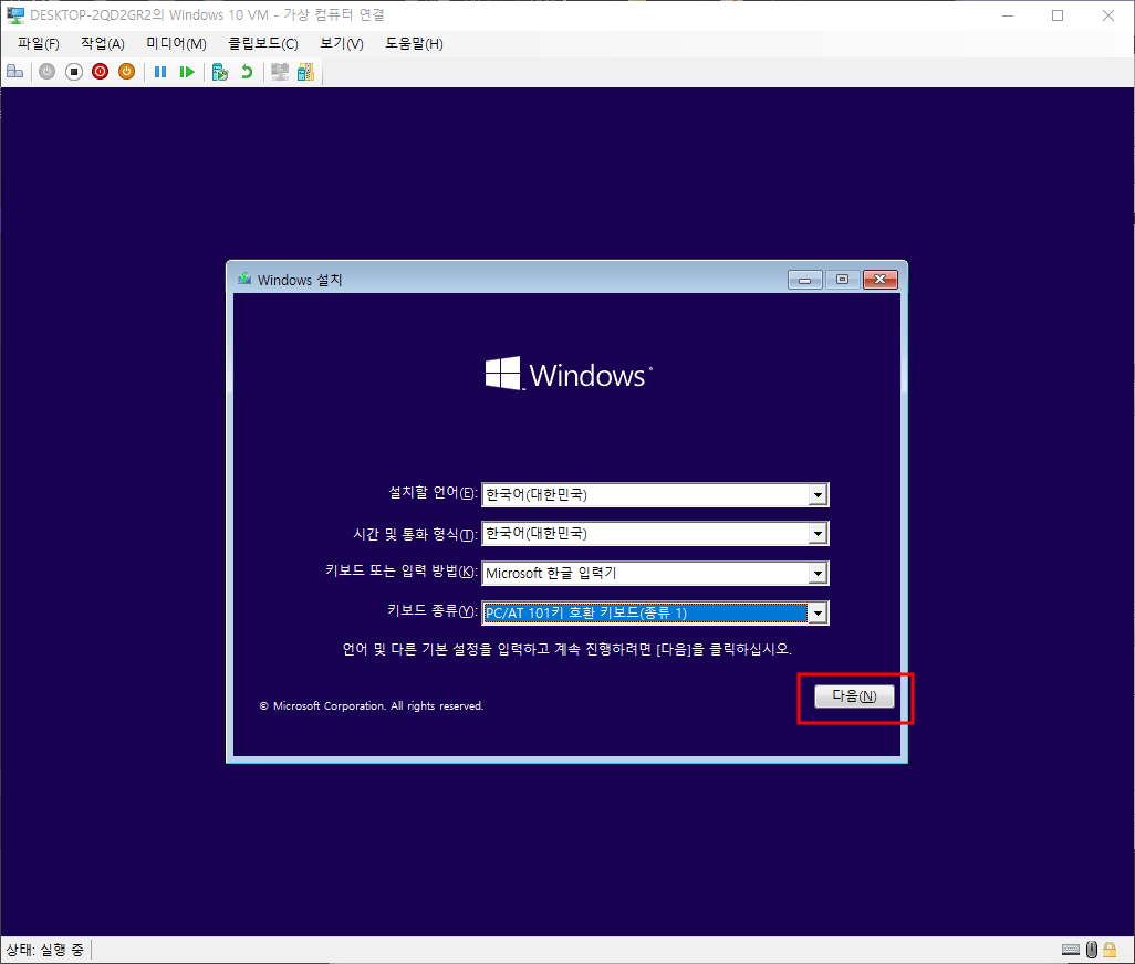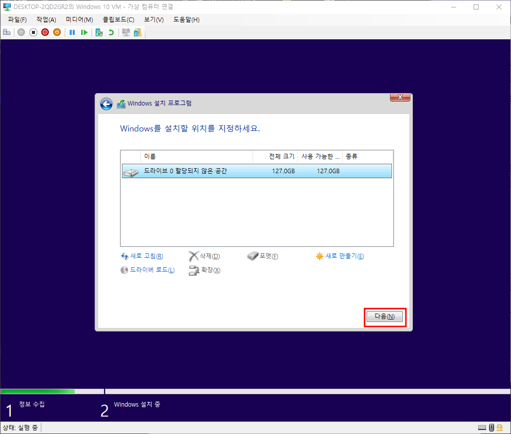 설치할 운영체제 선택 - 다음