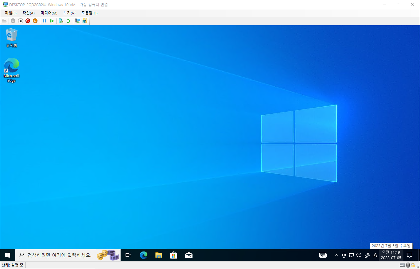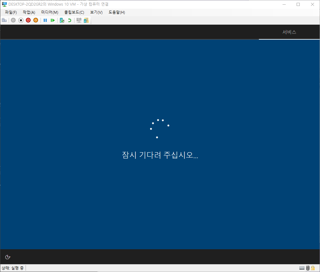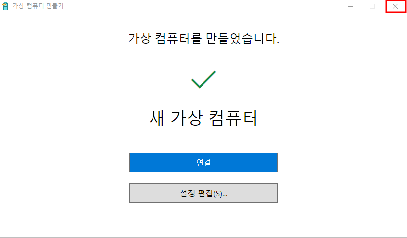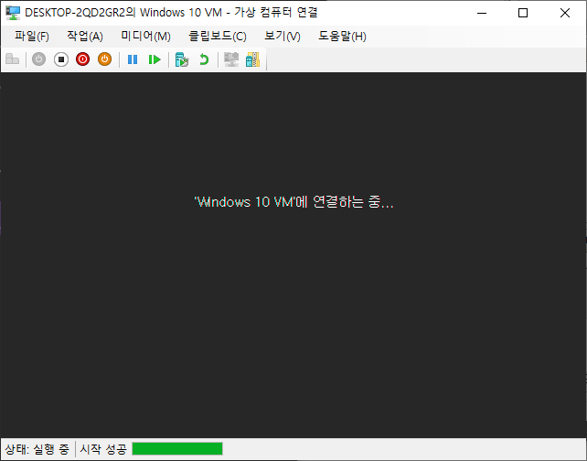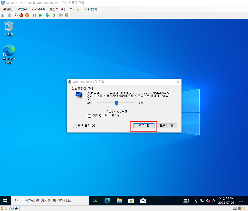 연결을 클릭한 경우 바로 가상컴퓨터에 연결할 수 있으나