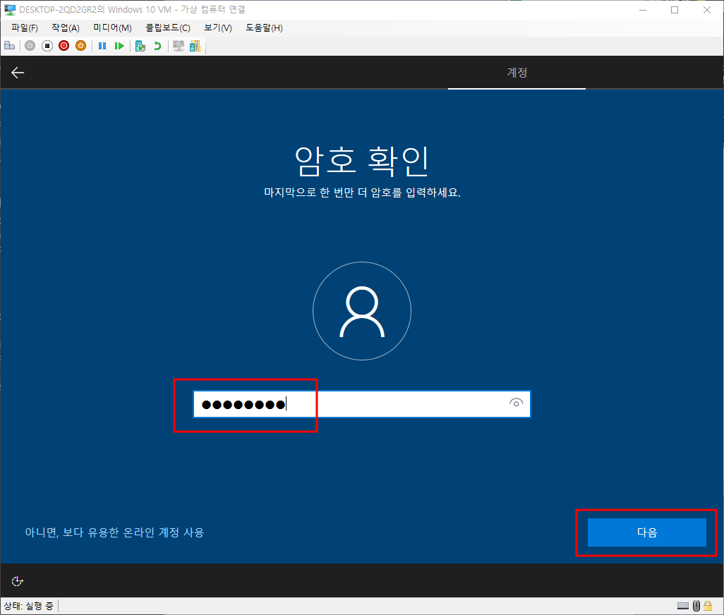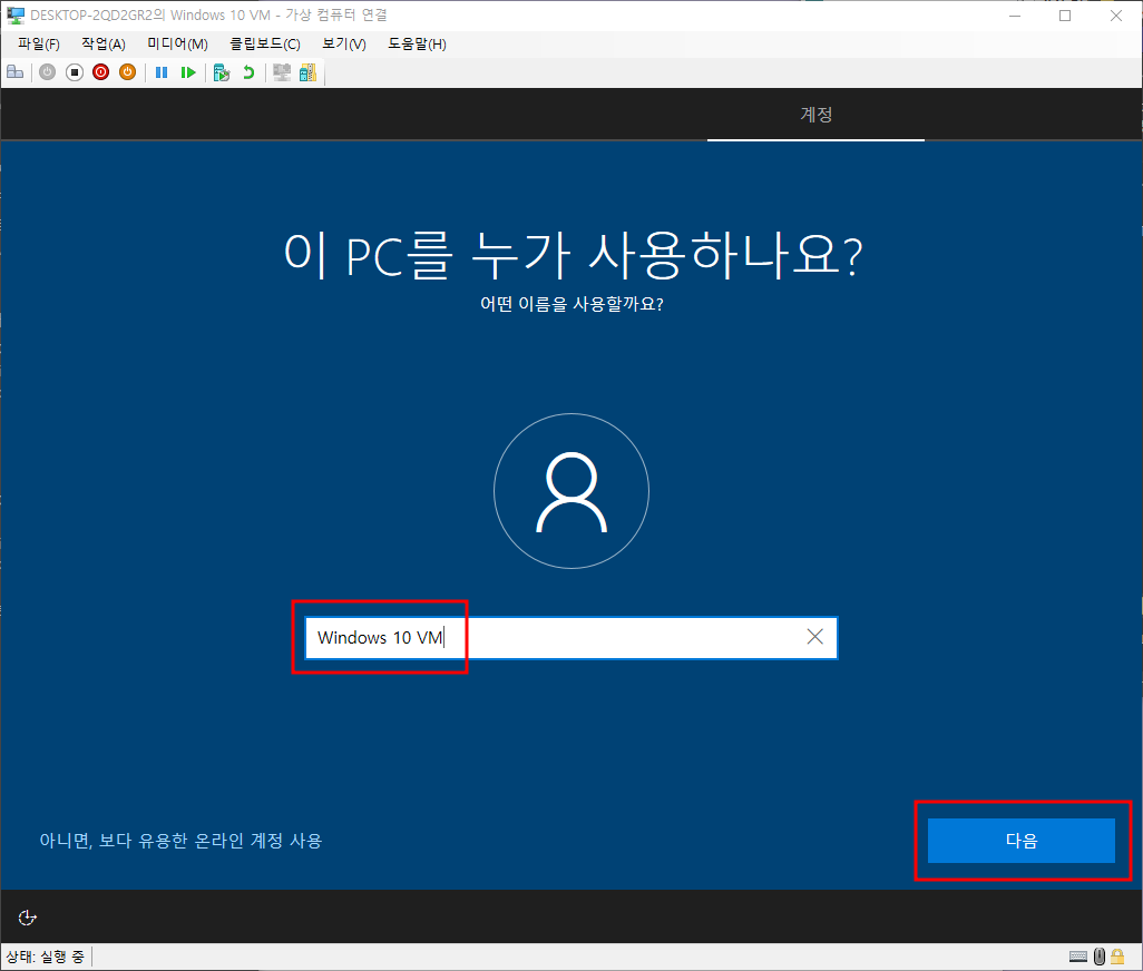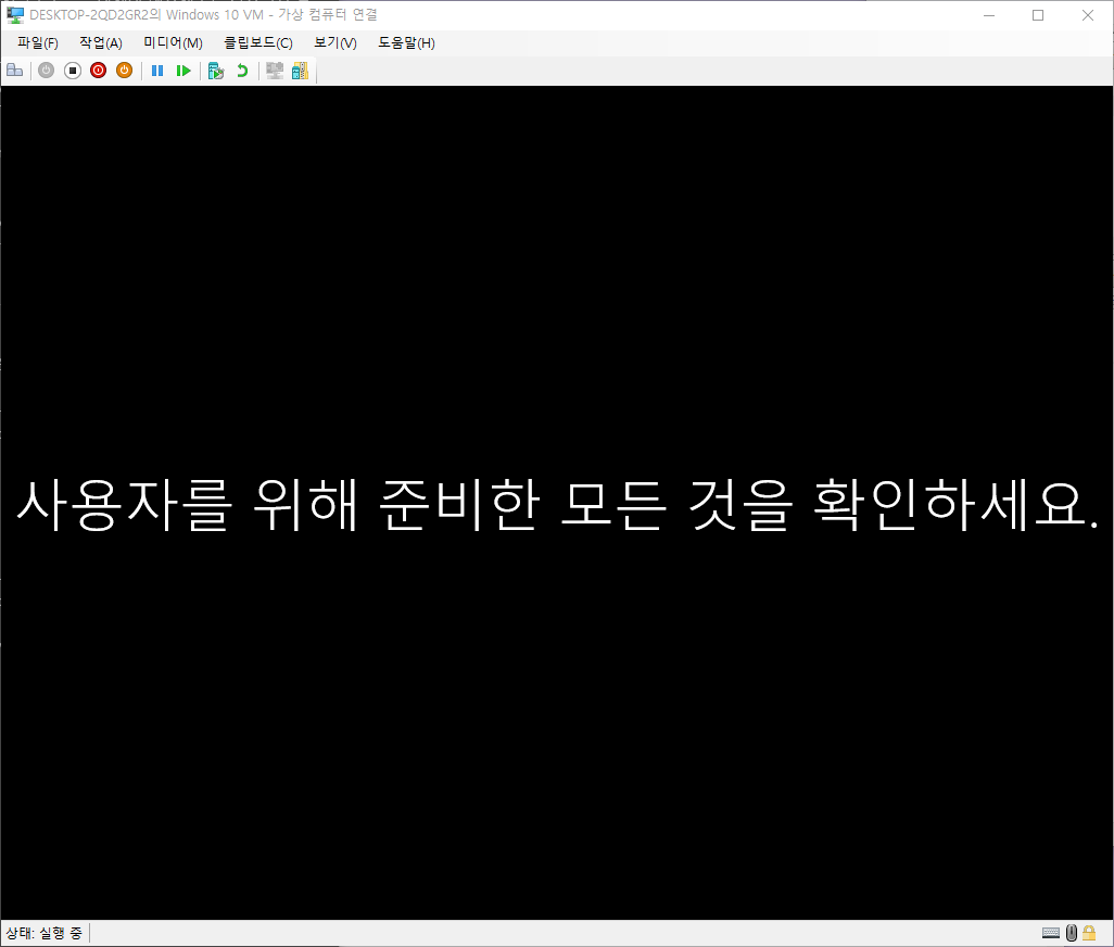 연결을 클릭한 경우 바로 가상컴퓨터에 연결할 수 있으나