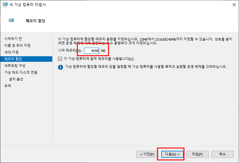 새 가상 컴퓨터 마법사 - 다음