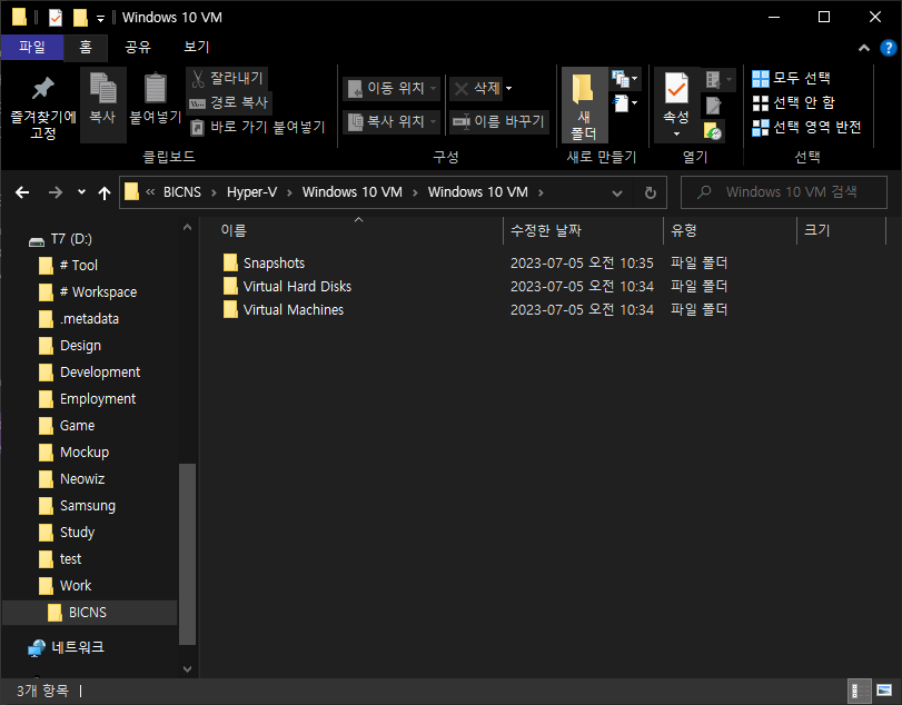 해당경로로 가 가상머신, 디스크 폴더 등이 잘 생성됬는지 확인