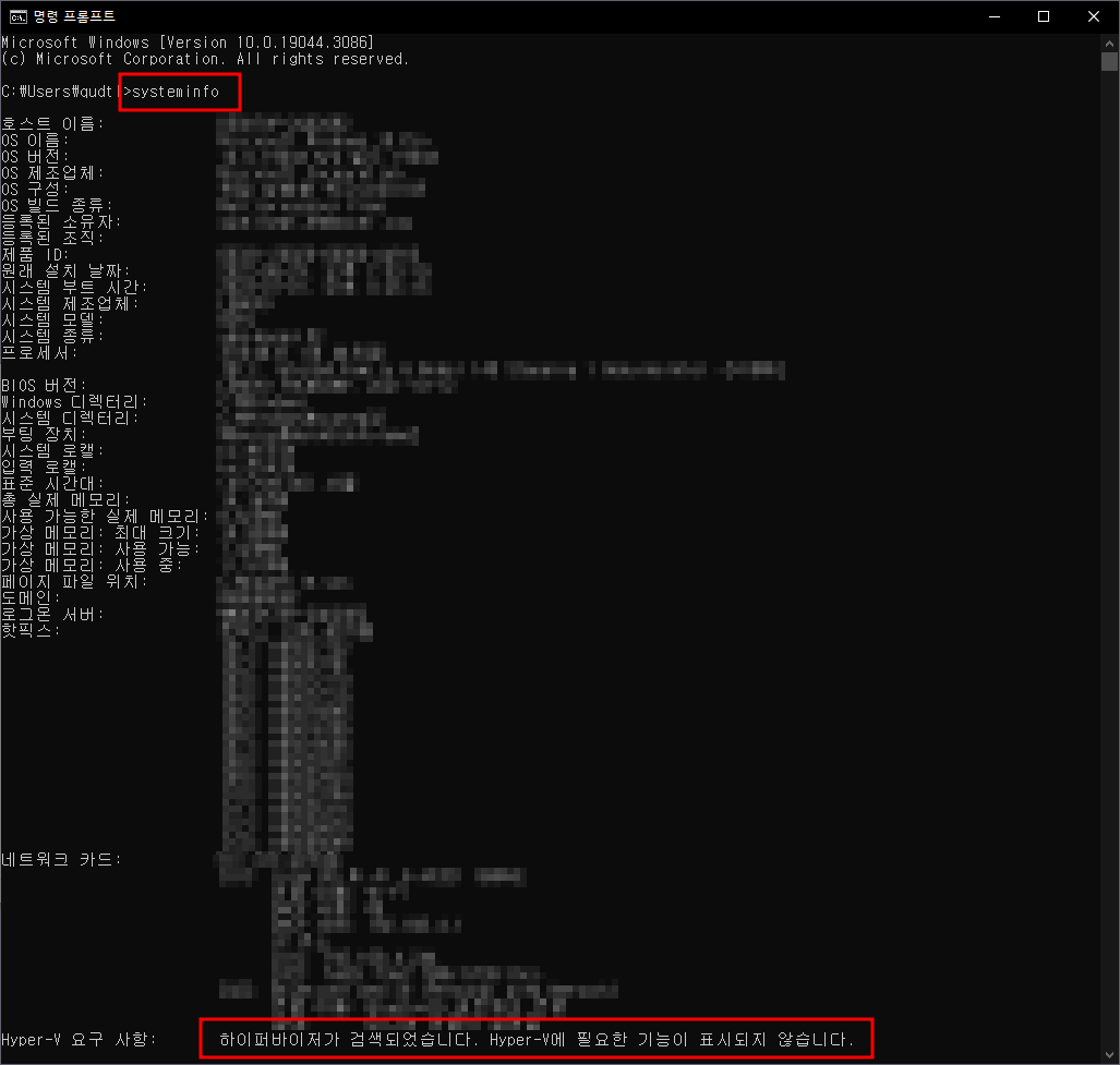 cmd - systeminfo - hyper-v 요구사항 확인
