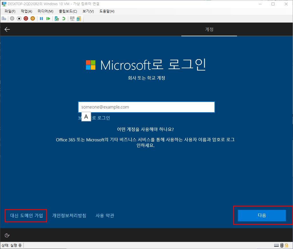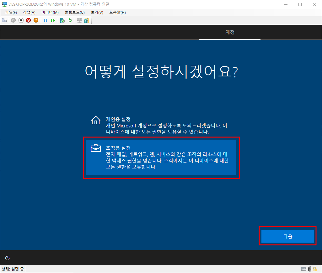 버튼이 활성화 될때까지 대기 - 조직용 설정 - 다음