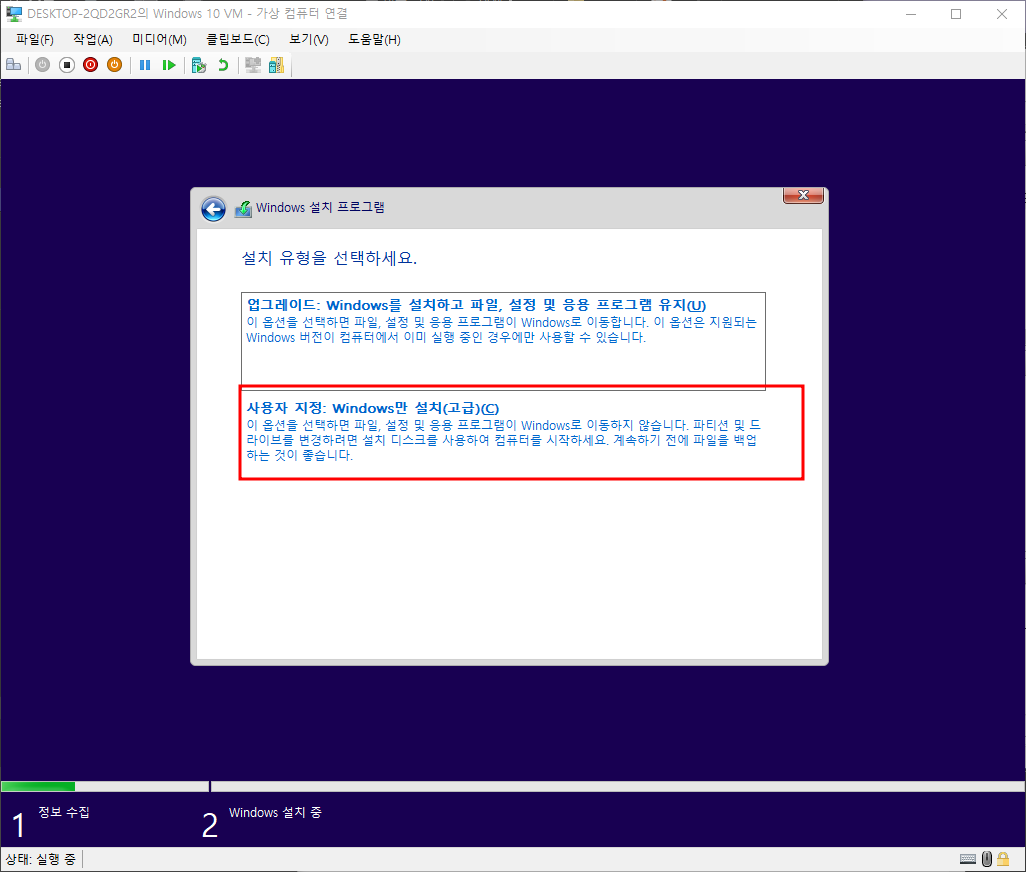 설치유형 - 사용자 지정 - 다음