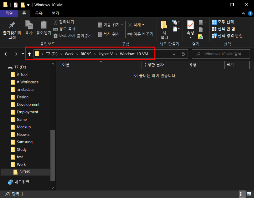 우선 가상 컴퓨터를 저장할 파일을 생성해 경로을 복사해놓자.