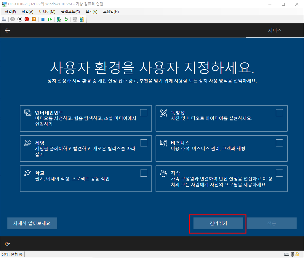 사용자환경 - 건너뛰기