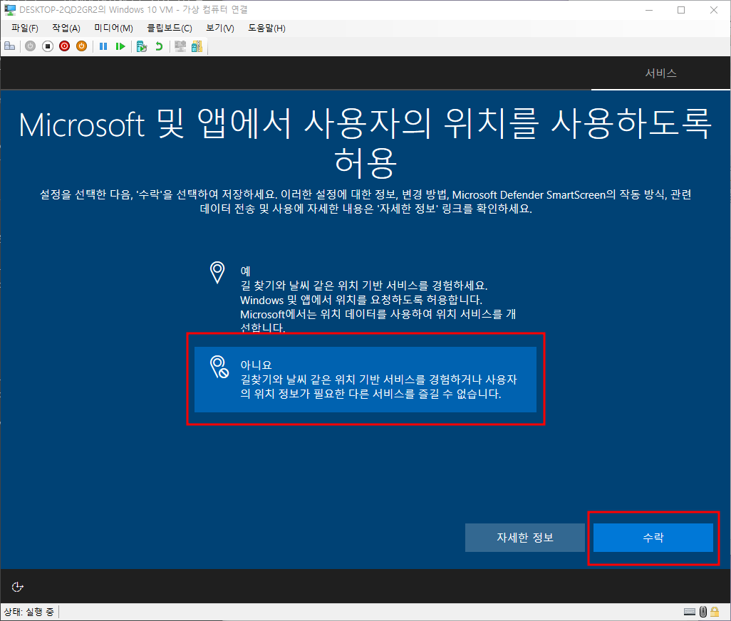 위치사용허용 - 아니오 - 수락
