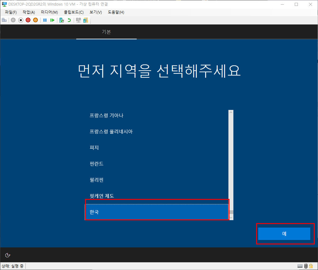 지역선택 - 예 - 예 - 건너뛰기