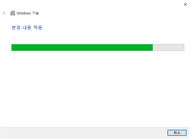 설정 - 앱 - 프로그램 및 기능 - Windows 기능 켜기/끄기 - Hyper-V 항목체크 - 확인 - 대기 - 다시시작