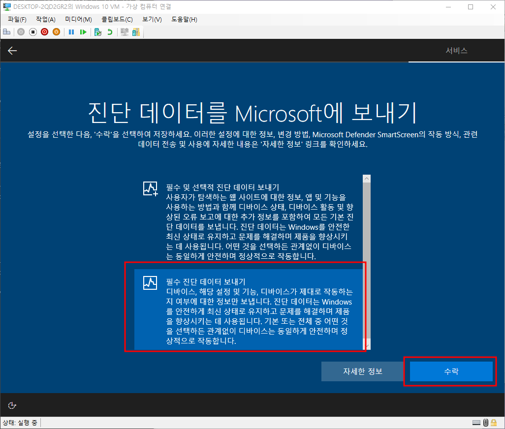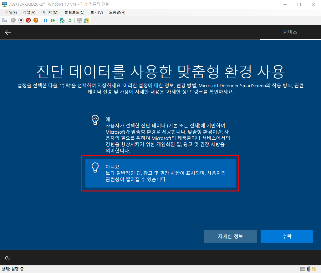진단데이터 맞춤형 환경 - 아니오 - 수락