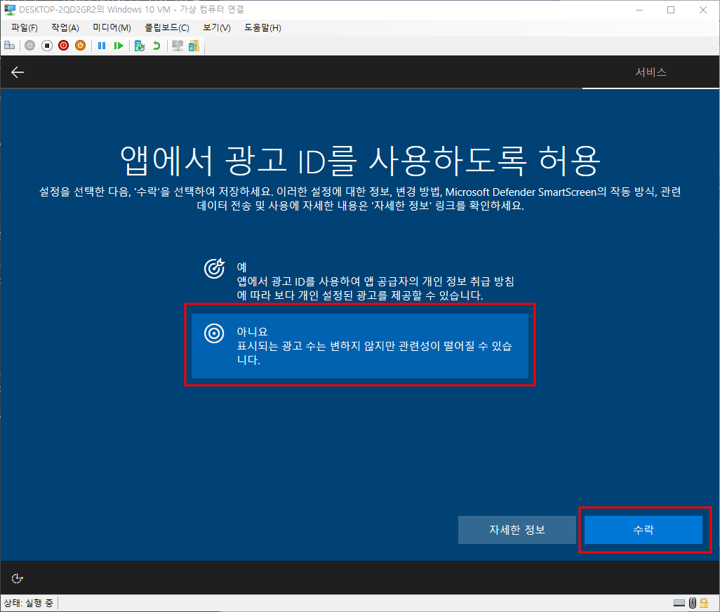 광고id - 아니오 - 수락