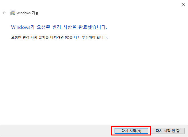 Hyper-V 기능을 활성화시 컴퓨터 재부팅이 필요하니