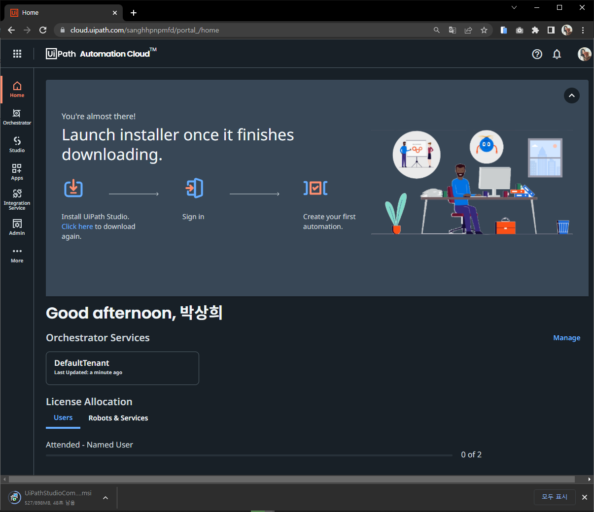 회원가입/로그인 후(구글계정 사용가능) Uipath 스튜디오 다운