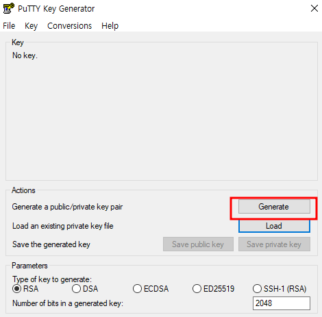 ssh 키 등록 - 도구 - ssh key 생성 또는 불러오기