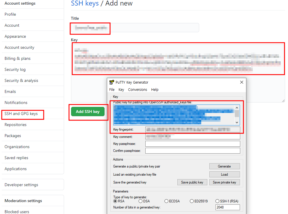 깃 - 로그인 - 설정 - shhkeys - key 복붙 - 원하는 title 설정 - add shh key