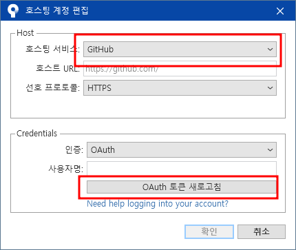 호스팅서비스 - github선택 - OAuth 토큰 새로고침 선택
