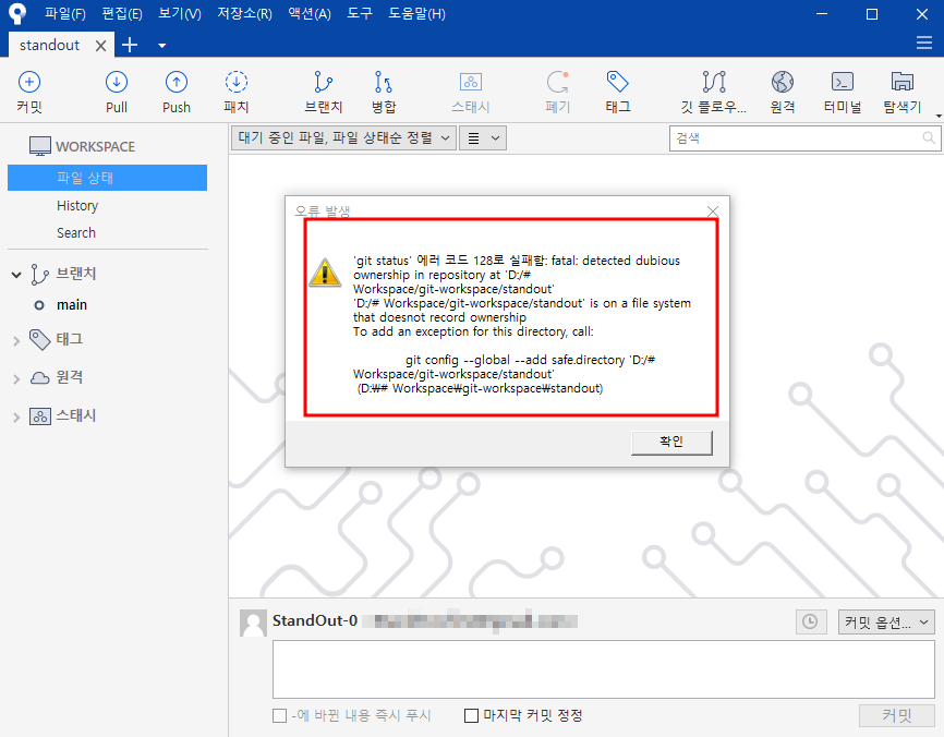 git error 128 fatal: detected dubious ownership in repository at ...