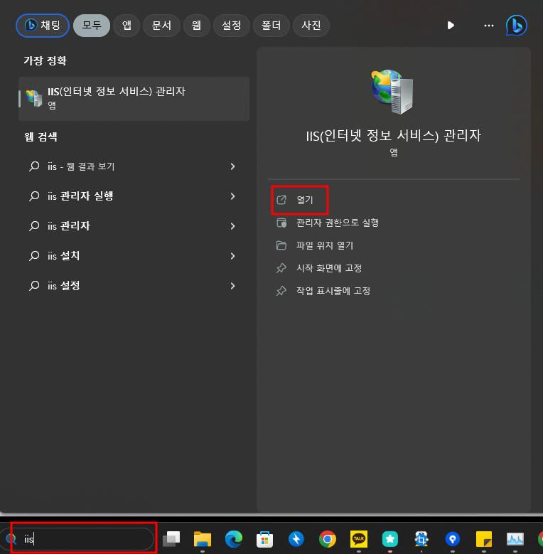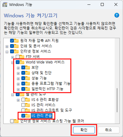 인터넷 정보서비스 - 웹 관리도구 - IIS관리콘솔 선택